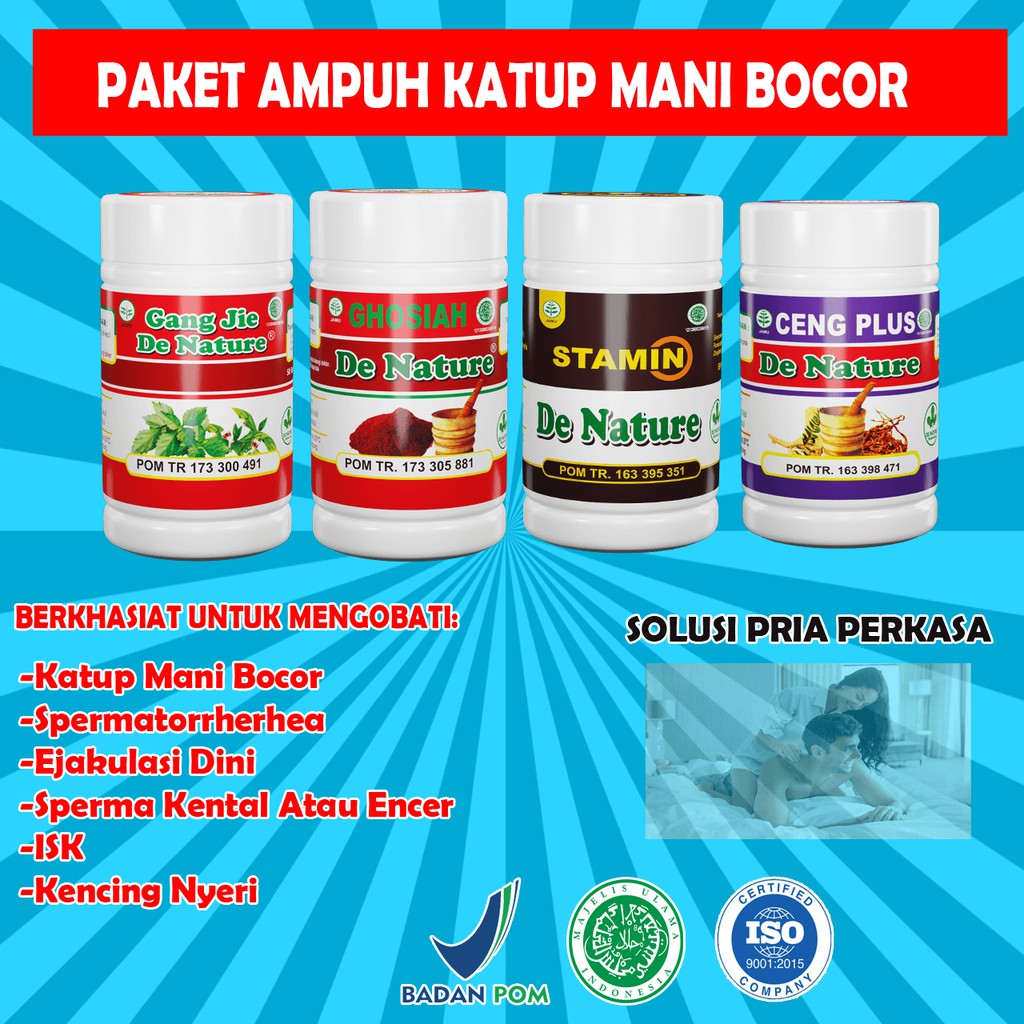 Pengobatan alternatif denature | pusatnya obat herbal berkhasiat |. Mengobati katup air mani bocor secara alami,obat kebocoran katup air . 6 tips terbaik mengatasi katup air mani bocor sampai sembuh total menurut dokter. Memperbaiki masalah katup air mani yang bocor; Masih banyak yang keliru mengenai katup mani bocor. Penyakit ini disebabkan oleh bakteri . Obat katup mani bocor,penyebab katup mani bocor,cara atasi katup mani bocor,mengobati kutup mani bocor,obat katup mani bocor di apotik,gejala katup mani . Pengobatan kebocoran katup mani · tidak merokok · tidak minum alkohol · mengurangi frekuensi masturbasi · mengonsumsi makanan bergizi · minum air . Kondisi katup air mani atau sperma bocor di dalam medis dikenal. Obat herbal mengobati katup mani bocor / kebocoran pada katup mani, cilacap. Mengandung dha tinggi yang sangat bermanfaat bagi kesehatan sperma. Kebocoran air mani (sperma) adan mimpi basah sering dianggap sama, padahal keduanya adalah .